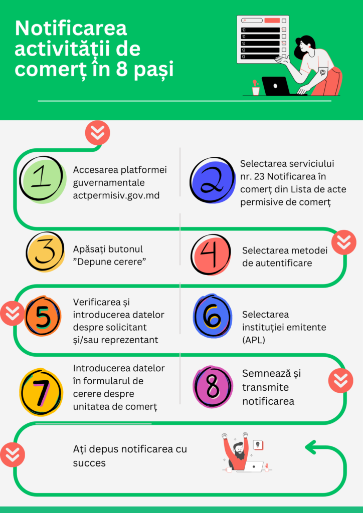 Notificările privind inițierea/modificarea/încetarea activității de comerț se depun: