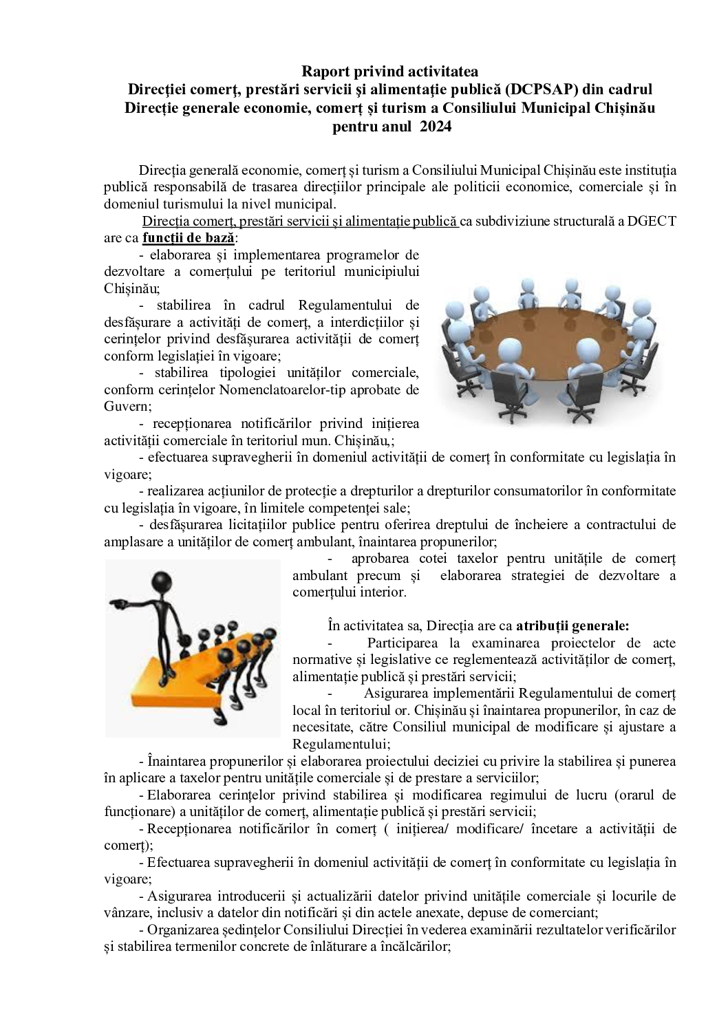 Raport privind activitatea Direcției comerț, prestări servicii și alimentație publică pentru anul 2024